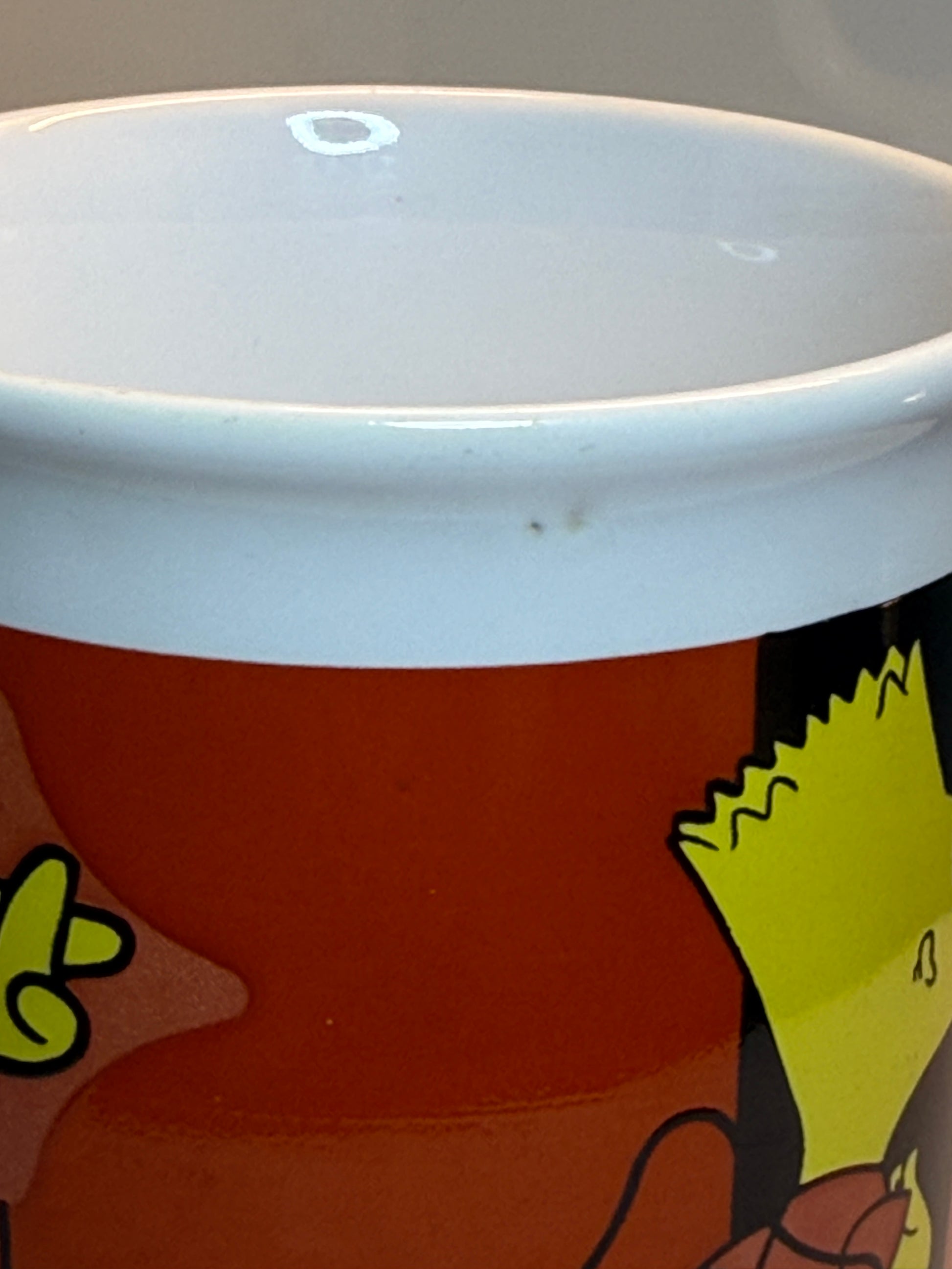 Produced as licensed merchandise and made in England, this ceramic mug showcases bold original artwork with Bart Simpson against a rich red background. A nostalgic piece that appeals to collectors of vintage television memorabilia and fans of classic Simpsons design.