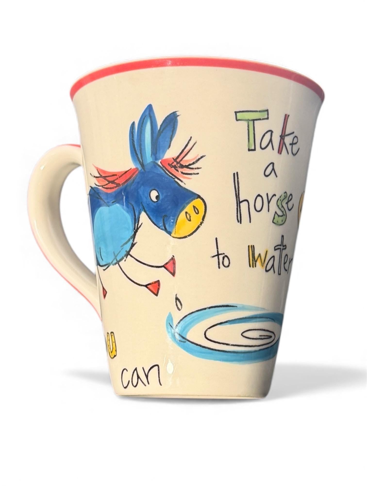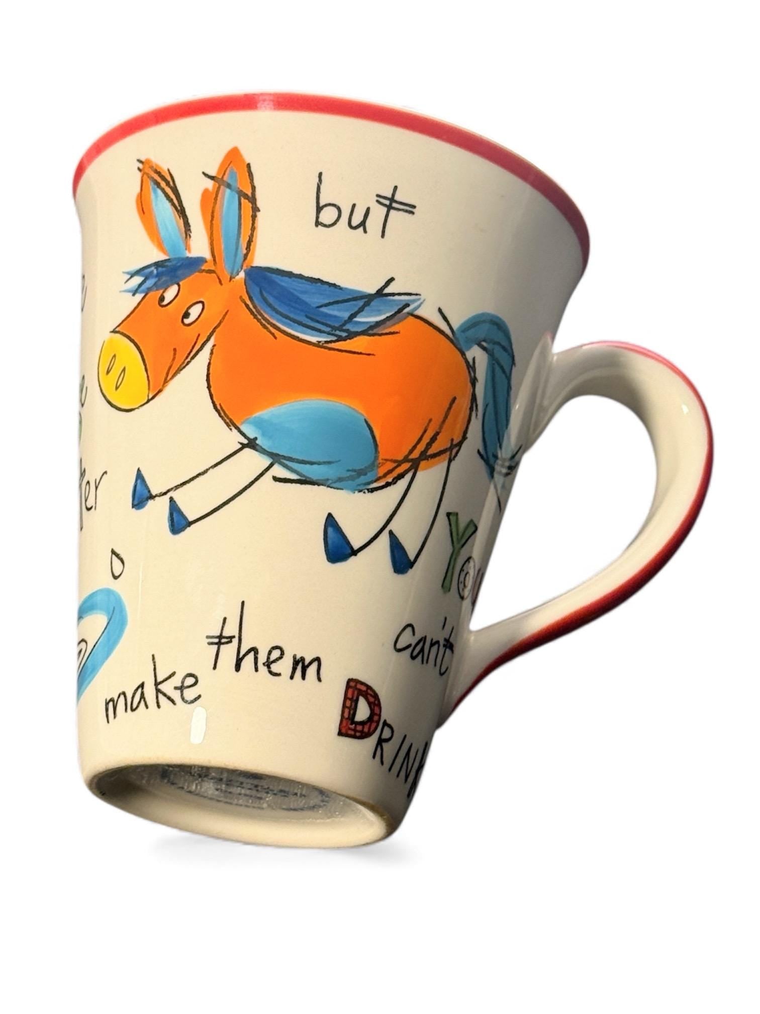 This Whittard of Chelsea ceramic mug features a charming illustrated donkey design with humorous text, reflecting Whittard’s distinctive illustrated style. A well-made and characterful piece, ideal for collectors of novelty mugs or for tasteful display.
